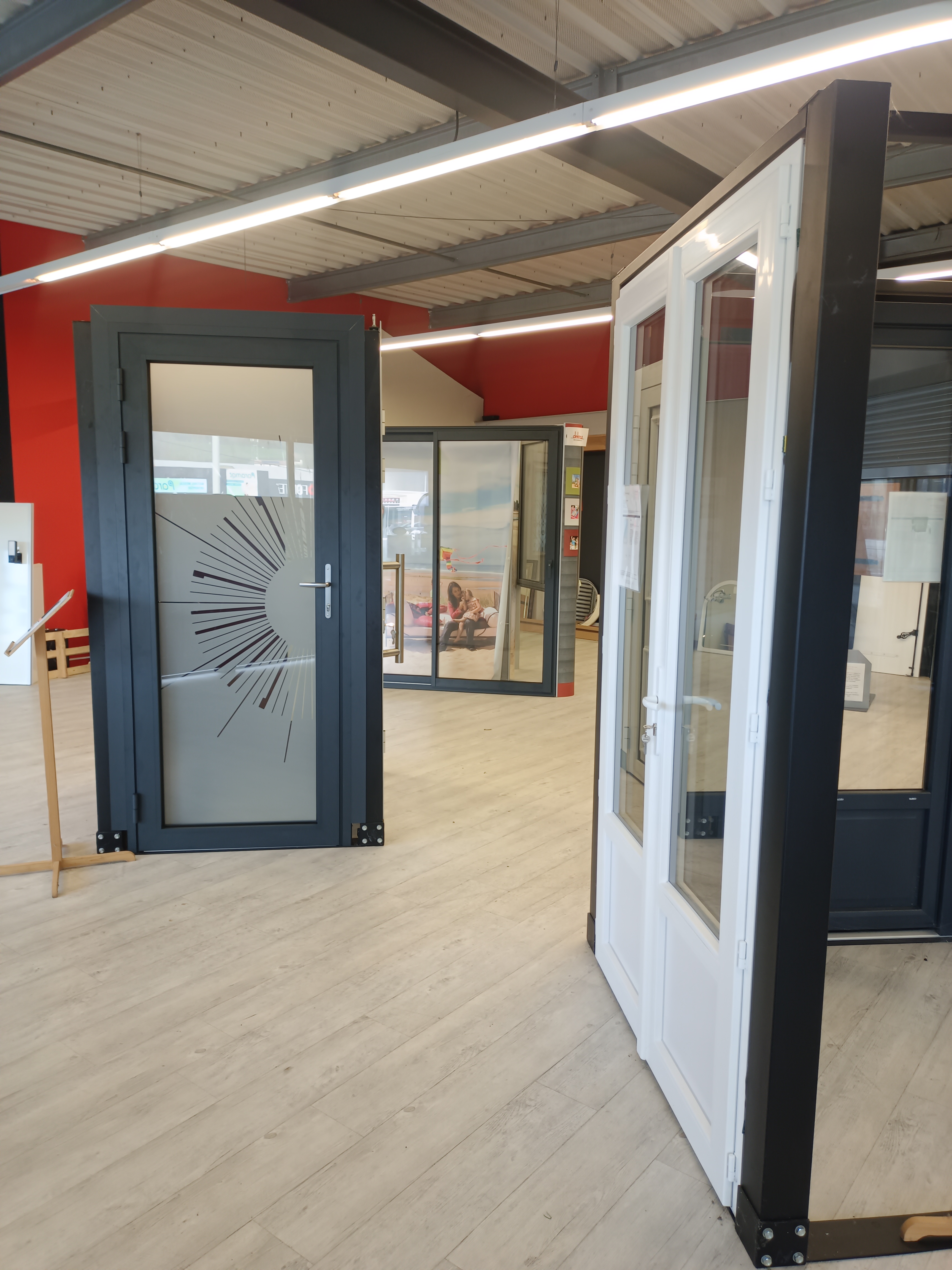 Le showroom expose une large gamme de menuiseries aluminium et menuiseries PVC adaptées à tous les types d’habitat.